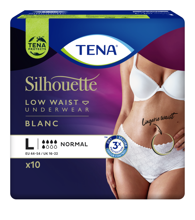 TENA Silhouette Plus Low Waist is speciaal ontwikkeld voor actieve vrouwen, die behoefte hebben aan discretie, comfort en zekerheid. Beschikbaar in de maten Medium en Large.